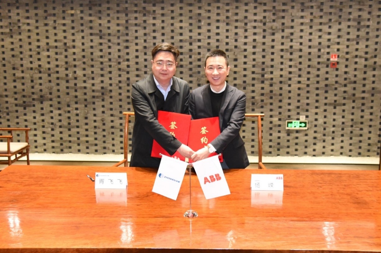 中恒電氣與ABB達(dá)成戰(zhàn)略合作共識(shí)。胥飛飛與楊嶸分別在戰(zhàn)略合作協(xié)議上簽字。