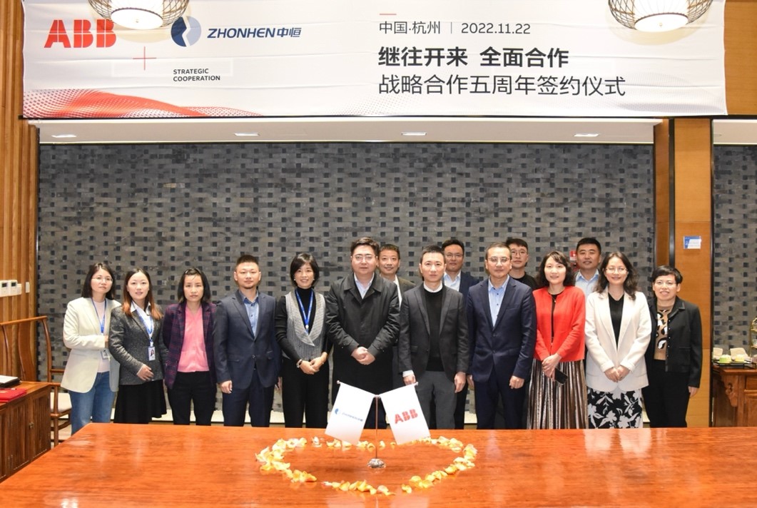 2022年11月22日下午,在杭州中恒電氣股份有限公司總部,杭州中恒電氣股份有限公司(以下簡(jiǎn)稱:中恒電氣)與ABB(中國(guó))有限公司電氣事業(yè)部(以下簡(jiǎn)稱:ABB)舉辦主題為“繼往開(kāi)來(lái),推動(dòng)市場(chǎng)和產(chǎn)品全面合作”戰(zhàn)略合作簽約活動(dòng)。2017年10月,是中恒電氣與ABB攜手相伴并進(jìn)的開(kāi)始。時(shí)光走筆,歲月成章。冬來(lái)秋往,別來(lái)無(wú)恙。如今,我們?cè)俅蜗嗑塾诖耍_(kāi)啟了中恒電氣與ABB的戰(zhàn)略合作的第六個(gè)年頭。