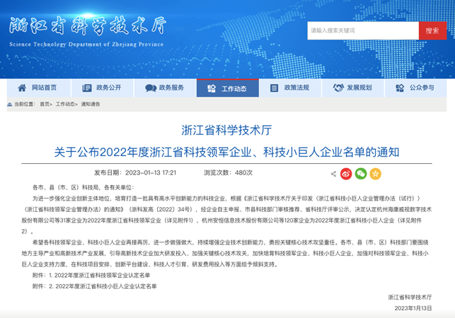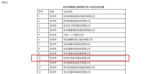 近日,浙江省科學技術廳根據(jù)管理辦法有關規(guī)定,公示了2022年度科技小巨人企業(yè)名單。經(jīng)杭州市科技局推薦、省科技廳評審復核,杭州中恒電氣股份有限公司憑借研發(fā)實力、科技創(chuàng)新、及行業(yè)規(guī)模等方面的綜合實力光榮上榜。