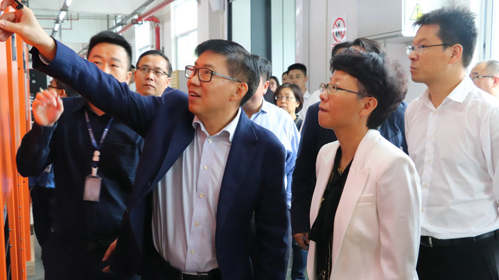 中恒電氣董事長朱國錠、富陽中恒電氣總經理徐增新等主要負責人對前來參觀的領導表示熱烈歡迎。朱董事長陪同吳玉鳳書記等一行領導對廠區HVDC車間、通信車間、充電樁車間進行參觀,并介紹了富陽中恒的基本情況和二期新廠區項目的整體規劃及建設情況。隨后,朱董事長還向各位領導詳細介紹了公司核心主業——電力電子制造和能源互聯網兩大板塊的業務發展情況和重點項目以及未來規劃。